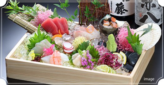 一目見た途端に、お客様から歓声が上がります!旬の海の幸を盛り込んだ彩り豊かなお造り。まさに“海鮮宝箱”です。