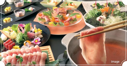 旅籠茶家かやかやの人気メニュー。甘味とコクのある味わいが特長の「さくらポーク」をこだわりのダシで贅沢に楽しむダシしゃぶ鍋です。